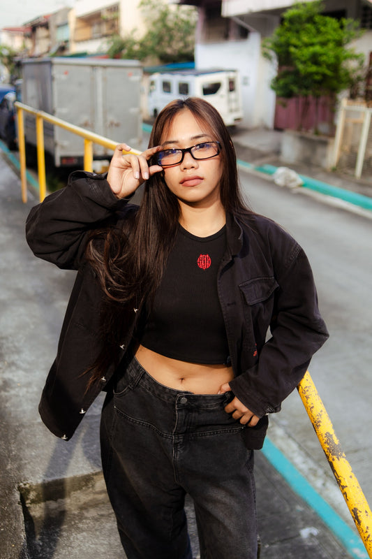 TG RIB-KNITTED CROP TANKTOP BLACK